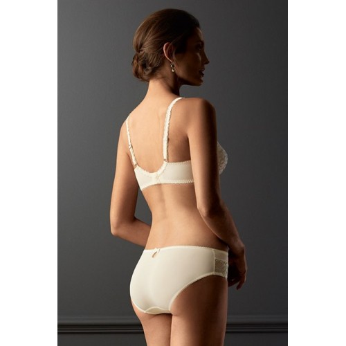 Нежный кружевной бюстгальтер без косточек, который отлично облегает и поддерживает грудь. Женственный дизайн с чашечками, декорированнми кружевом подчеркивается светлым цветом крем с голубым.
