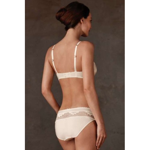 Неотразимый мягкий бюстгальтер без косточек в нежном кремовом цвете. Идеален для ежедневного ношения. Красивый светлый оттенок идеально сочетается с легим кружевом, декорирующим низ лифа, чашечки и переходящим на бретели. Модель бюстгальтера богата на разнообразные декоративные элементы, делающими его неповторимым.