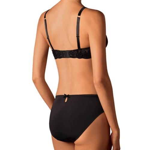 Элегантный черный бюстгальтер с необычным оформлением чашечек металлической тканью и дополненные кружевом. Мягкий бюстгальтер выполнен без косточек.