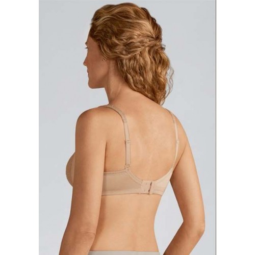 Элегантный мягкий бюстгальтер сдержанного телесного цвета, без косточек с чашечками, декорированными непрозрачным кружевом. Модель отлично облегает и деет необходимую поддержку груди. Красивый дизайн с чашечками, покрытыми изысканным кружевом привлекает внимание и не оставляет эту модель без внимания.