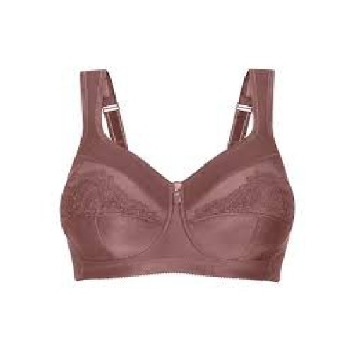 Мягкий закрытый бюстгальтер с удобными вшивными чашечками в сдержанном розово-коричневом цвете. Модель выполнена без косточек, верхняя часть чашечек оформлена прозрачной сеткой в тон бюстгальтера. Чашечки снабжены тканевыми кармашками, которые плотно фиксируют протез. Удобная форма чашечек и отсутствие косточек добавляют удобства в ношении и делают модель универсальной.