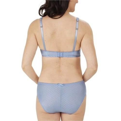 Роскошный бюстгальтер голубого цвета с разрезными, слегка усиленными чашечками телесного цвета. Модель на косточках.