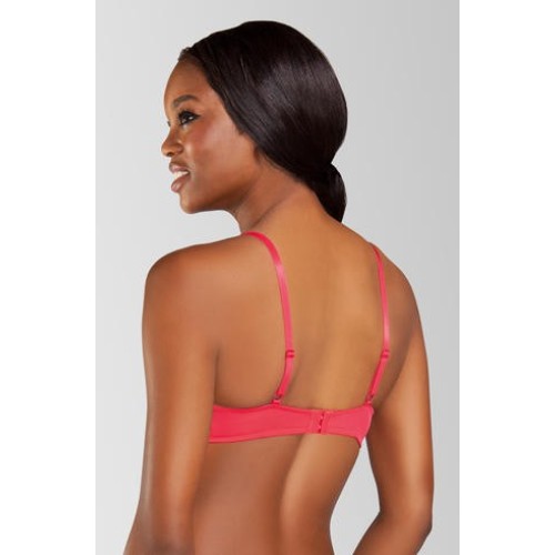 Стильный бюстгальтер в ярком насыщенном цвете красный коралл. Модель дополнена косточками.