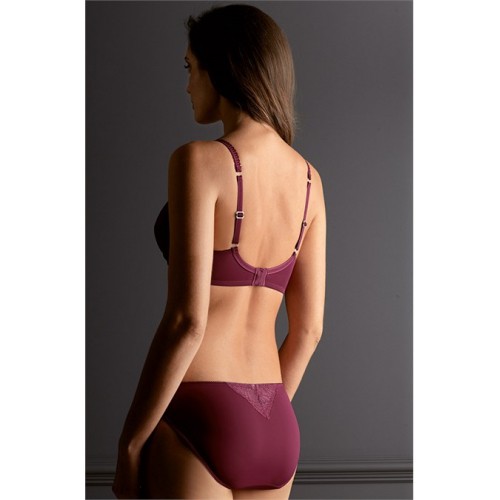 Роскошный бюстгальтер в насыщенном бордовом цвете, дополненный непрозрачным кружевом в тон и блестящей подвеской по центру.