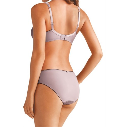 Невероятно изысканный и комфотный бюстгальтер притягательного цвета светлая слива, декорирован контрастным черным кружевом по нижнему краю лифа. Модель изготавливается на косточках. Праздничная красота, совмещенная с удобством для ежедневного использования. Приятная цветовая гамма идеально сочетается с воздушным декоративным кружевом. Сама ткань выполнена с нейтральным принтом в сеточку.