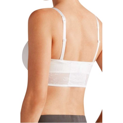 Аксессуар-топ изготовлен из прозрачного кружева с набивным цветочным принтом и представляет собой легкий топик без бретелек. Специальные крепления плотно фиксируют его на основаниях лямочек бюстгальтера. Он может использоваться только для носки поверх бюстальтера и не змменяет его.