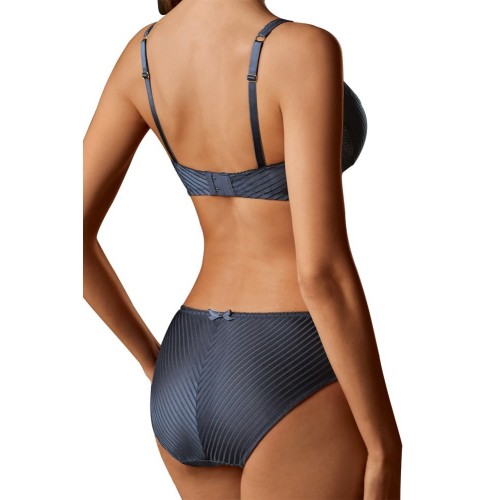 Роскошная и соблазнительная модель бюстгальтера приглушенного синего цвета с формованной чашечкой и без косточек. Выполнена в комбинации цветов - синем дениме и телесном.