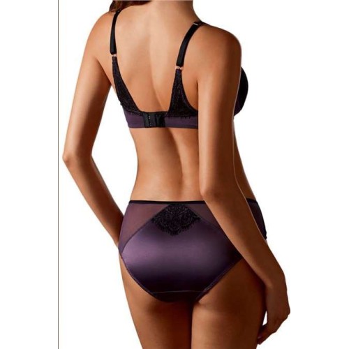 Великолепный бюстгальтер в стиле бурлеска в сочетании цвета темной сливы и черного канта, дополненный кружевными элементами изящной кисточкой. Модель имеет формованные чашки. Праздничная красота и роскошь соединена с поразительным удобством для ежедневного использования. Яркая и насыщенная цветовая гамма идеально сочетается с воздушным декоративным кружевом, которое красиво обрамляет чашечки.