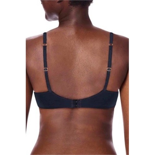 Восхитительный бюстгальтер с чашечками из поролона. Выполнен из красивого кружева и тисненого материала в полоску. В нем Вы будете чувствовать себя потрясающе и комфортно. Цвет темно-синий/телесный.