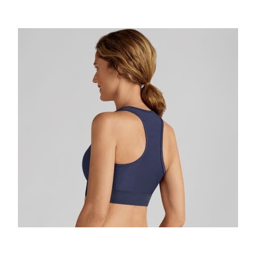 Строгий и стильный бюстгальтер Amoena Zipper Bra для спорта на молнии внешне напоминает спортивный топ. Выполнен в приглушенном синем цвете. Цельнокройная конструкция оказывает отличный эффект поддержки и не сковывает движений. Широкие лямки удобно фиксируют грудь и протез, облегчают нагрузку на спину, не натирают плечи. Лямки не регулируются по длине.