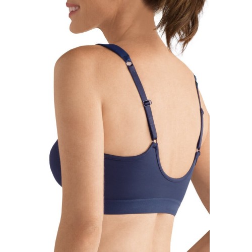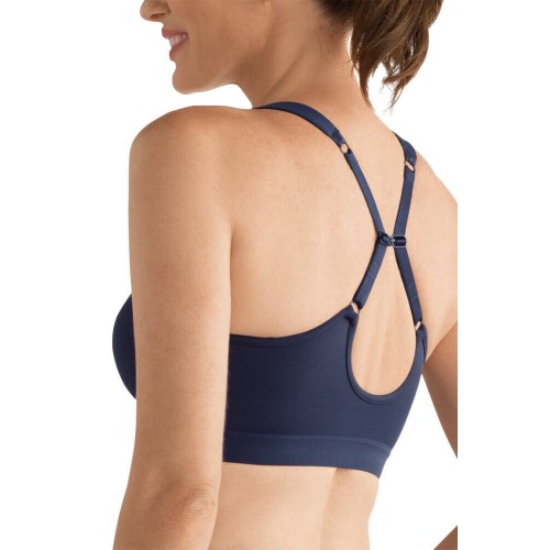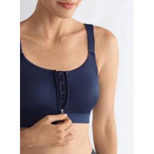 Яркий стильный темно-синий бюстгальтер Amoena Zipper Bra для спорта, выполнен на молнии спереди и внешне напоминает спортивный топ. Цельнокройная выкройка оказывает отличный эффект поддержки и не сковывает движений при активных упражнениях. Широкие лямки удобно фиксируют грудь и протез, облегчают нагрузку на спину, не натирают плечи. Лямки удобно регулируются по длине и могут перекрещиваться для лучшей поддержки груди и протеза.