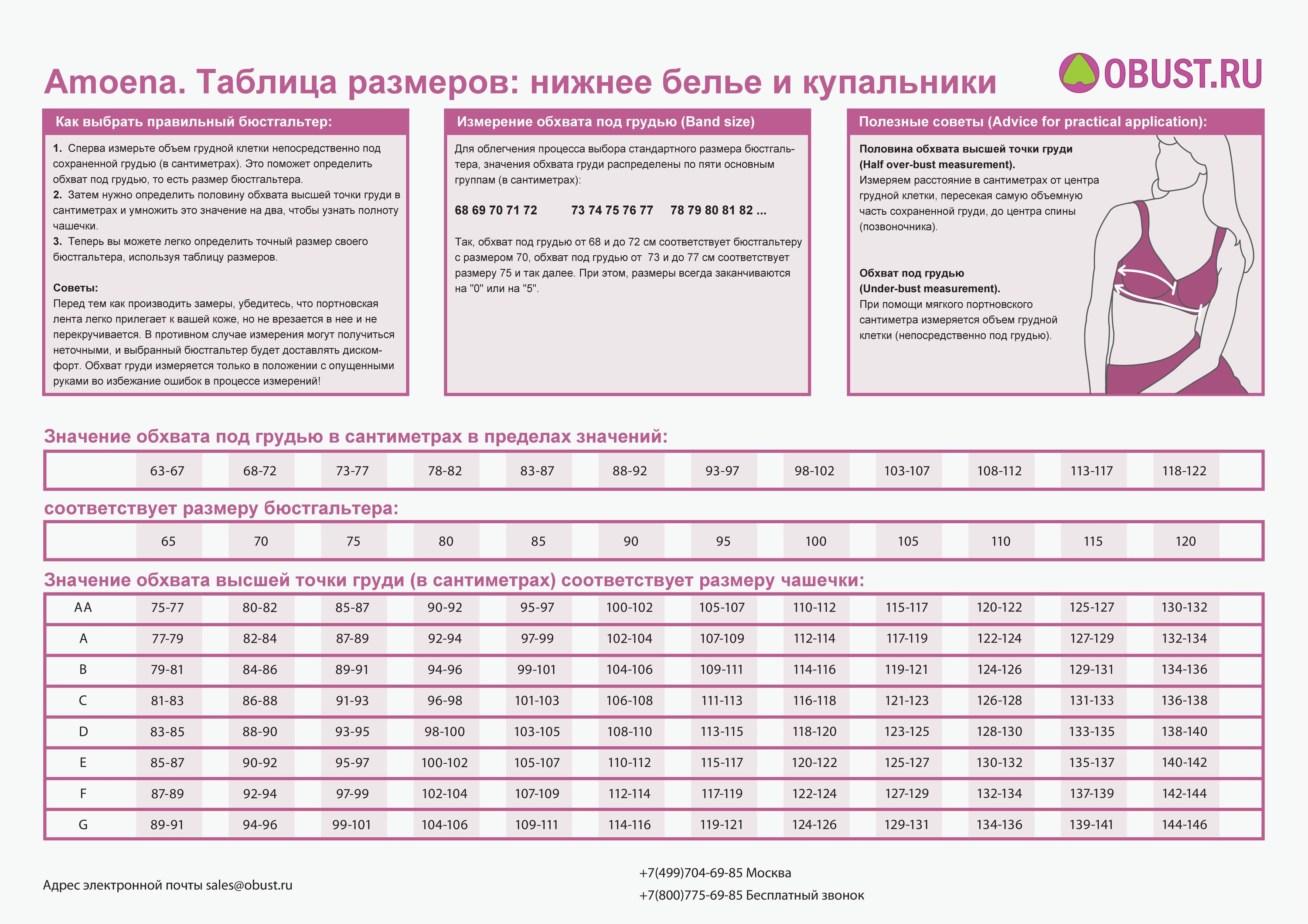 Таблица размеров Amoena