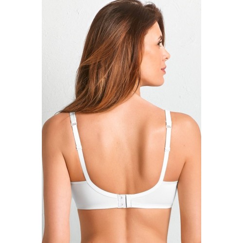 Бюстгальтер обеспечивает идеальную поддержку груди благодаря высоким боковым элементам и закрытым формованным чашечкам из легкого пенного материала. Удобные лямочки средней толщины комфортно располагаются на плечах, снимают нагрузку со спины и удобно регулируются.