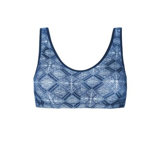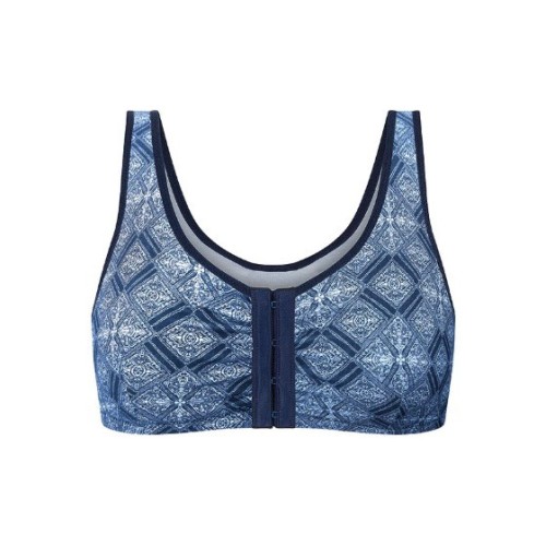 Мягкий и удобный хлопковый бюстгальтер в сине-белой гамме. Модель предназначена для послеоперационного периода. Выполнена в форме маечки с застежками спереди и комфортной фиксацией груди и протеза. Широкие бретельки и особенная мягкость материала позволяют носить модель в течение всего дня без дискомфорта и неприятных ощущений.