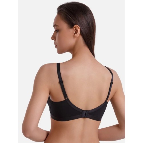 Бюстгальтер Конфиденс Ламбада красивый и изящный с кружевом черного цвета. Формованные чашки. Без косточек. Завышенная линия декольте маскирует неровности и асимметрию.