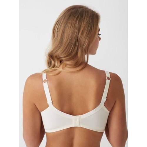 Красивая и удобная модель для повседневного использования. Модель выполнена с мягкими формованными чашечками с карманами. Бюстгальтер изготовлен в нежном цвете слоновая кость.