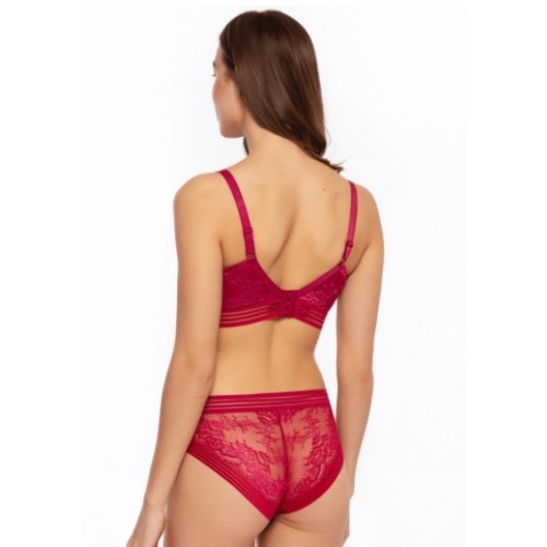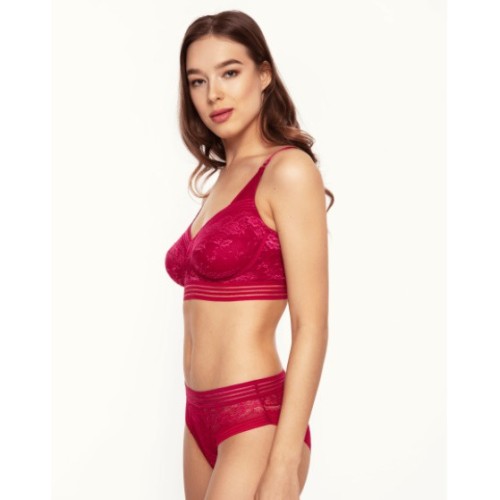 Незабываемый оригинальный бюстгальтер с мягкими сшивными чашечками анатомической формы, покрытыми кружевом в тон. Бюстгалтер выполнен в цвете Морозная ягода. Коллекция Осень/Зима 2020.