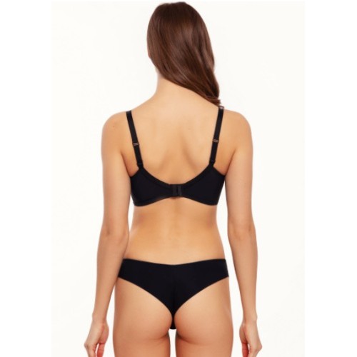 Романтичный бюстгальтер дополняют фестоны с нежными ресничками по линии декольте и вдоль нижней линии под грудью. Оригинальной деталью, дополняющей эту модель, стала крупная шнуровка между чашечками. Безупречная посадка на фигуре благодаря глубоким формовочным чашечкам полностью решает проблему с размещением и плотной фиксацией экзопротезов. Они снабжены карманами из мягкого микроволокна, которое приятно ощущается на коже.