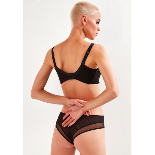 Завышенная спинка и боковые элементы из двухслойной эластичной ткани дает плотное прилегание бюстгальтера к телу. Широкие бретели регулируются по длине, выполнены из комфортной эластичной ленты с добавлением сатина.