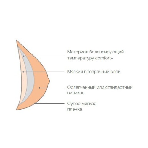 Симметричный экзопротез с супер мягким внутренним слоем и терморегулирующим материалом для полной груди. Протез обеспечивает более естественное ощущение и внешний вид.