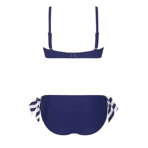 Строгий раздельный купальник с преобладанием прямых линий, выполненный в традиционных сине-белых цветах. Модель Весна 2021.