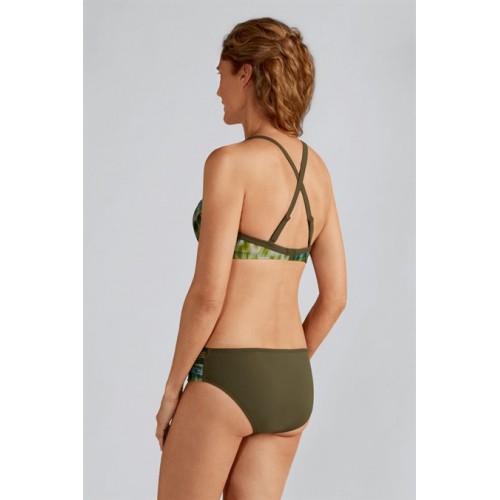 Оригинальный раздельный купальник с ярким сочетанием цветов на леопардовом принте, за основу взят цвет хаки. Высокий вырез тщательно скрывает следы операции, придавая чувство надежности. Бретели перекрещиваются на спине, удобно закрепляя лиф. Удобные скрытые кармашки крепко фиксируют протезы. Мягкие чашечки купальника поддерживают грудь и протез, корректируя именно те участки, которые нуждаются в этом.