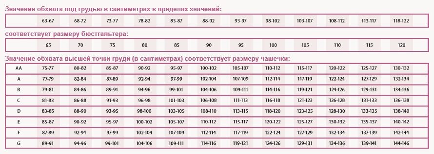 ПРИМЕР: У Вас 46 Российский размер и чашка В, соответственно Ваш размер купальника AMOENA будет 40B