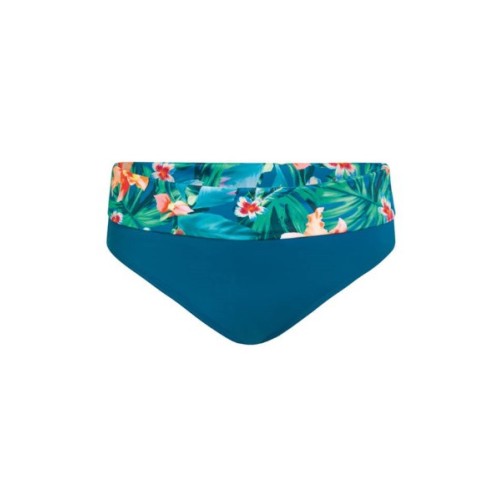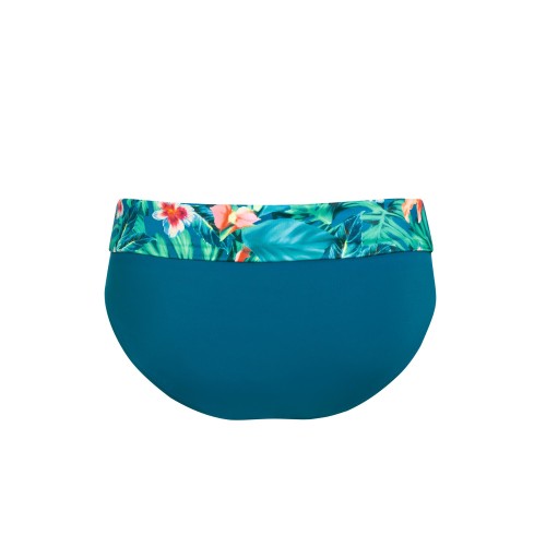 Трусики с высокой талией выполнены из однотонной бирюзовой ткани и дополнены широким цветным поясом. Это отличная и проверенная модель, если нужно скрыть небольшой животик.