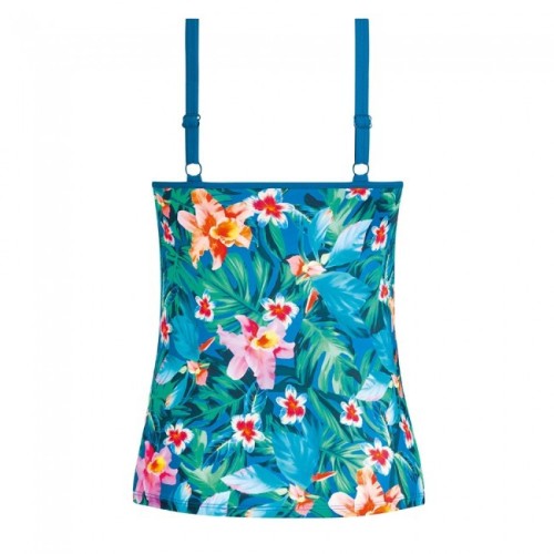 Купальник-танкини из бирюзовой высококачественной ткани с красочными крупными цветами. Красивая летняя модель для пляжа или бассейна.