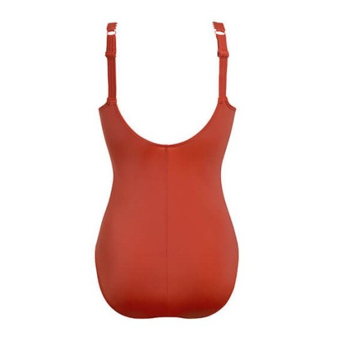 Купальник снабжен выделенным лифом, который можно присборить тесемкой посередине. Центральная пестрая часть обработана кантом имитирующим белую строчку. Чашечки лифа купальника дополнены мягкими тканевыми карманами для плотной фиксации протезов. Открытая спинка представляет собой традиционную и удобную округлую форму для цельной модели купальника. Широкие бретели легко регулируются по длине и комфортно располагаются на плечах, не натирая их.