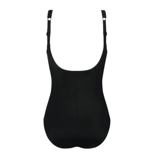 Спинка купальника выполнена в традиционном стиле, открывая фигуру до середины спины. Широкие лямочки купальника регулируются по длине. Они легко меняют натяжение и не натирают плеч. Благодаря широким бретелям, снимающим нагрузку со спины, купальник удобен для женщин с большой грудью.