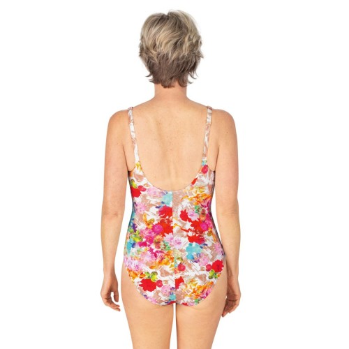 Слитный купальник с жизнерадостным ярким цветочным принтом. Широкие брители.