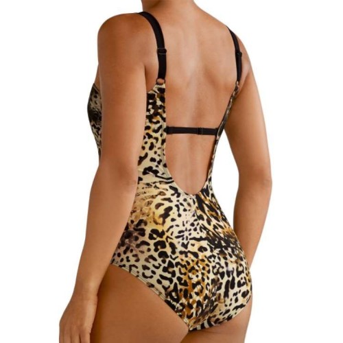 Яркий и дерзкий цельный купальник с леопардовым принтом и глубоко открытой спиной. Модель отлично смотрится как на загорелой, так и светлой коже. Модель Весна 2018.