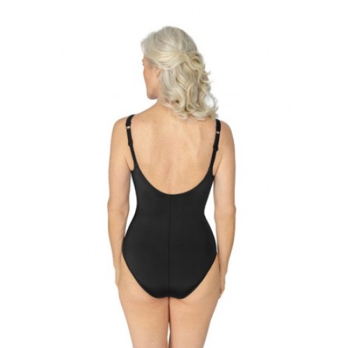 Элегантный закрытый цельный купальник с изысканным черно-белым принтом, идущим по центральной части модели. Высокий вырез модели тщательно маскирует следы операции, придавая чувство защиты и плотной фиксации. Купальник снабжен удобными кармашками в чашечках, которые крепко зафиксируют протезы груди и полностью исключат их смещение. Мягкие чашечки хорошо поддерживают грудь и протез, корректируя именно те области, которые нуждаются в этом. Широкие лямочки дают полноценную поддержку и не натирают плечи.