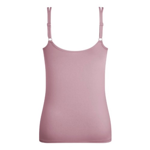 Универсальный топ в нежном весеннем светло-лиловом цвете с оригинальными сдвоенными бретельками-спагетти. Упрощенная и элегантная модель, которая отлично смотрится как в сочетании с пиджаком или блейзером, так представляет интерес и сама по себе.