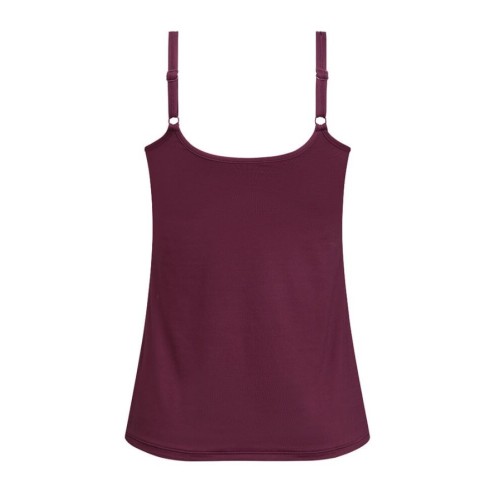 Универсальный топ в насыщенном винном цвете буругунд с оригинальными сдвоенными бретельками-спагетти на передней части. Упрощенная и элегантная модель, которая отлично смотрится как в сочетании с пиджаком или блейзером, так представляет интерес и сама по себе.