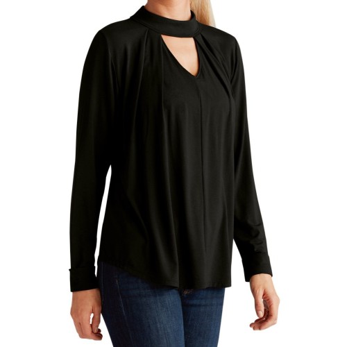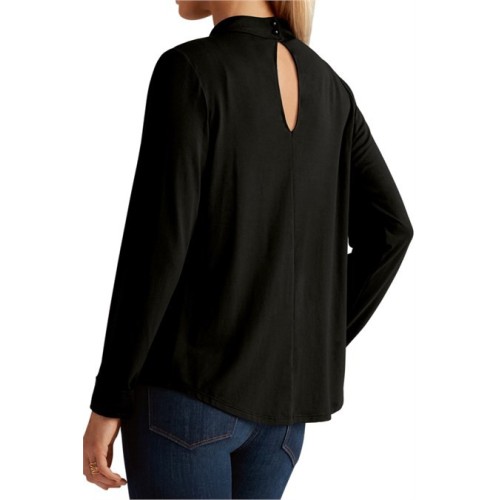 Великолепный черный топ с длинным рукавом из нежной вискозы. Свободный крой и струящаяся ткань приятно обволакивают фигуру и скрывают недостатки. Топ оформлен с элегантными вырезами спереди и на спине. Застежки-пуговки сзади создают дополнительные акценты.