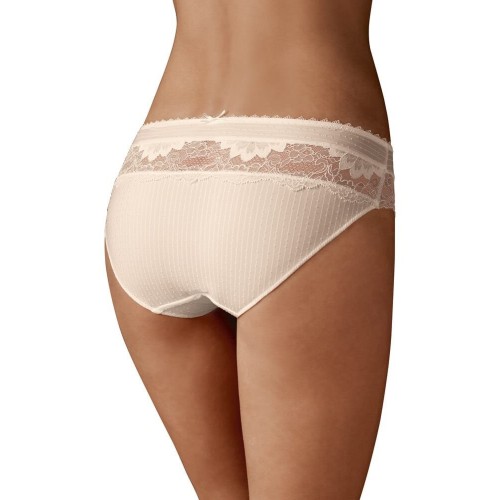 Воздушные трусики-слипы нежного кремового цвета, выполнены из тонкой жаккардовой ткани с набивным жемчужным узором. Вшивной поясок обеспечивает идеальную посадку трусиков на теле.
