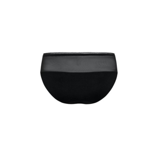 Обворожительные и оригинальные трусики-слипы с широкой кружевной полосой на поясе. Выполнены в строгом черно-сером цвете. Плотный геометричный рисунок на кружеве придает модели определенный шарм и имеет лишь малую прозрачность. Шов проходит по центру, делая боковинки безшовной моделью.