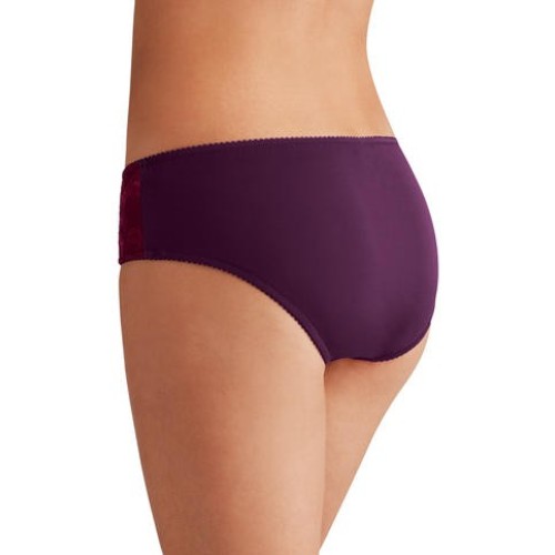Удобные трусики экстравагантного лилового цвета с ярким воздушным кружевом, идеально подходят для ежедневного ношения. Спереди они украшены воздушным кружевом цвета буругунд и дополнены нежным бантиком.