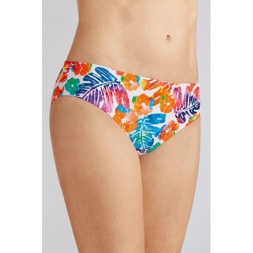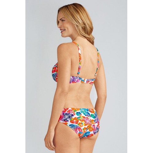 Летний купальник в ярких цветах с цветочным принтом. Эта модель раздельного купальника выполнена с высоким вырезом лифа. Подобная выкройка полностью скрывает следы операции, придавая чувство надежности и уверенности.